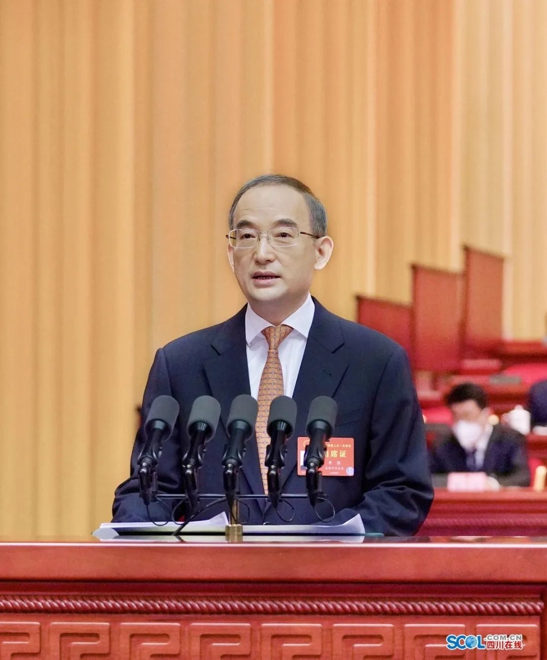 上午9時,王曉暉宣布:四川省第十四屆人民代表大會第一次會議開幕。全體起立,奏唱中華人民共和國國歌。