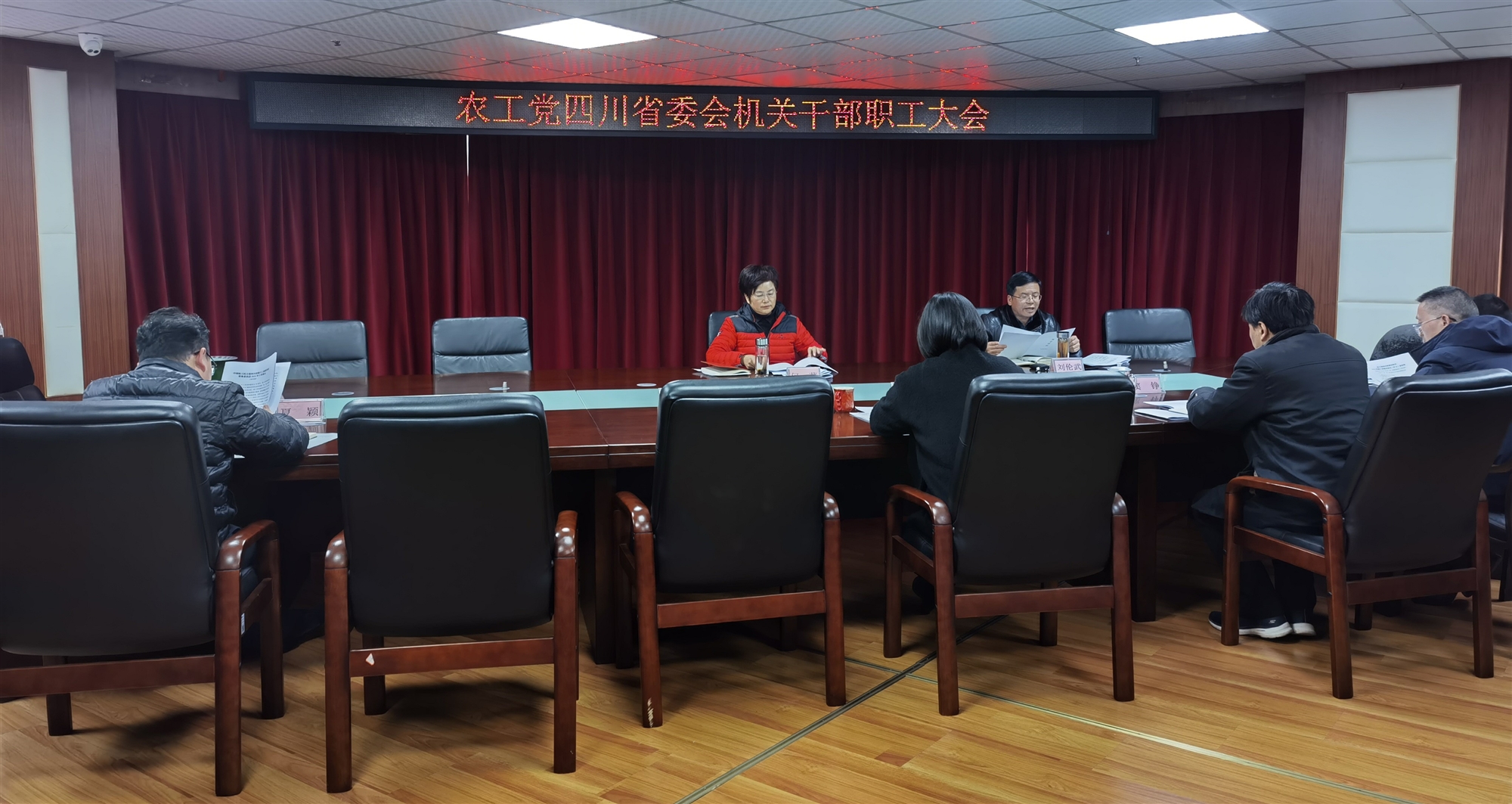 2024年2月27日,農(nóng)工黨四川省委會(huì)召開(kāi)機(jī)關(guān)干部職工大會(huì)暨機(jī)關(guān)辦公(擴(kuò)大)會(huì)。省委會(huì)專職副主委何蘋(píng)主持會(huì)議。省委會(huì)二級(jí)巡視員、副秘書(shū)長(zhǎng)劉倫武參加會(huì)議。