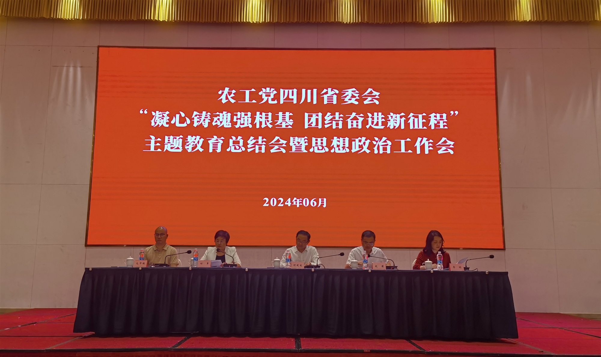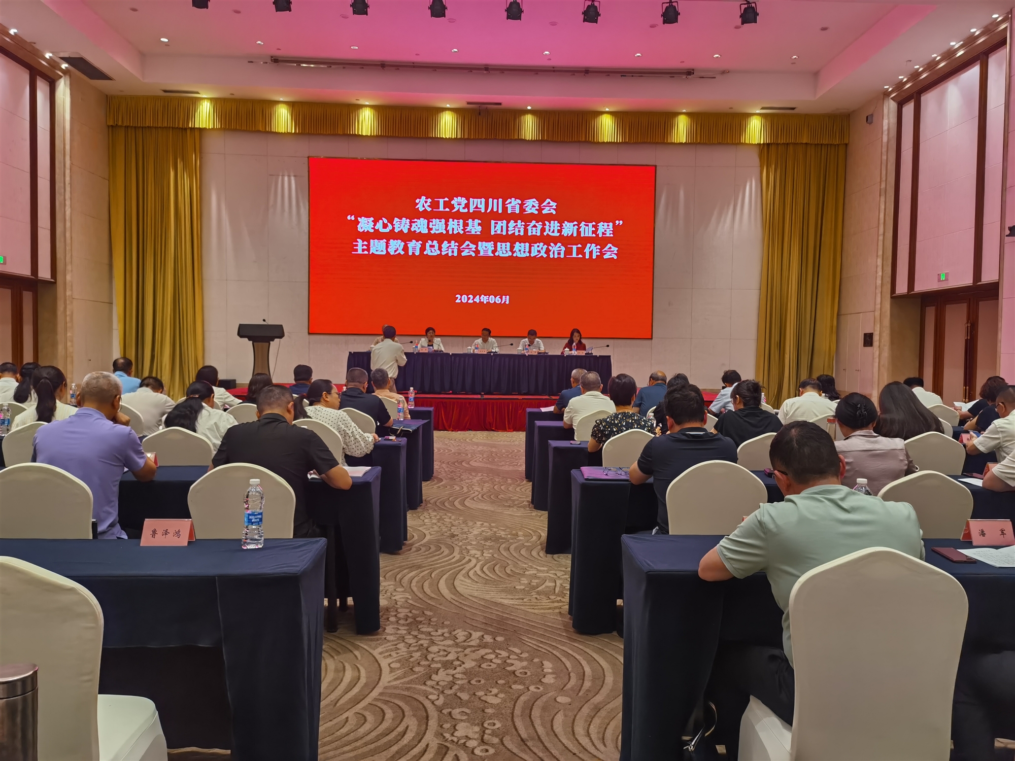 6月17日,農工黨四川省委會在資陽召開“凝心鑄魂強根基、團結奮進新征程”主題教育總結會暨思想政治工作會。省委會主委、省人大常委會副主任何延政出席會議并講話。省委會專職副主委、省政協副秘書長何蘋主持會議。省委會副主委李明、毛中根出席會議。資陽市委常委、組織部部長、統戰部部長趙璞出席會議并致辭。