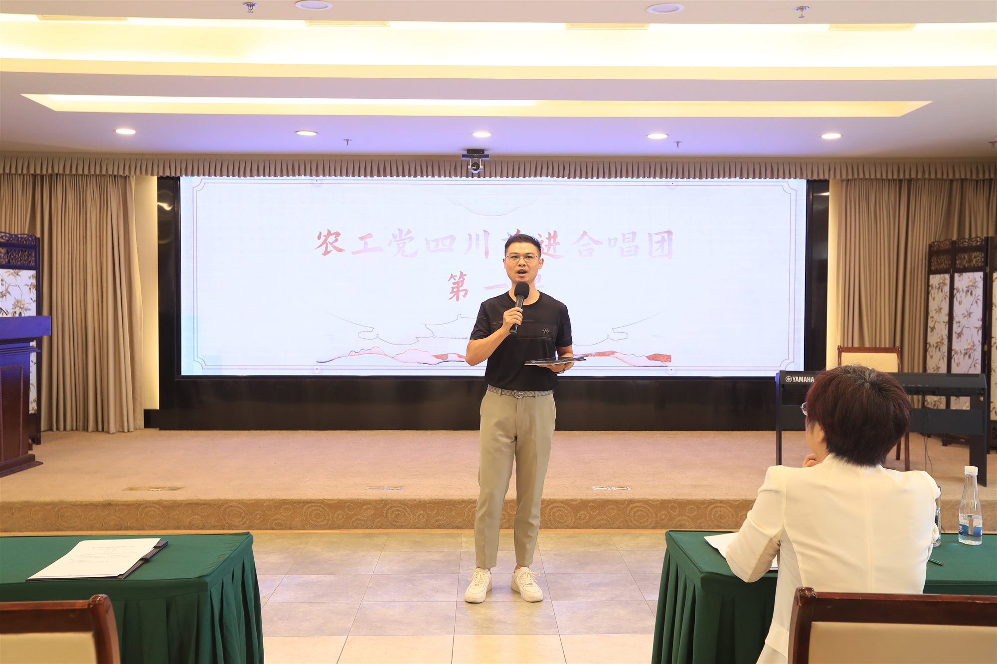 何蘋代表農工黨省委會向農工黨四川前進合唱團授牌,并對合唱團的成立表示熱烈祝賀。她指出,成立“農工黨四川前進合唱團”,是農工黨四川省委會深入學習貫徹習近平文化思想的具體舉措,在豐富農工黨黨員和機關工作人員文化生活、增強組織凝聚力的同時,也促進了身心健康、從“我”做起助力“健康中國”建設。