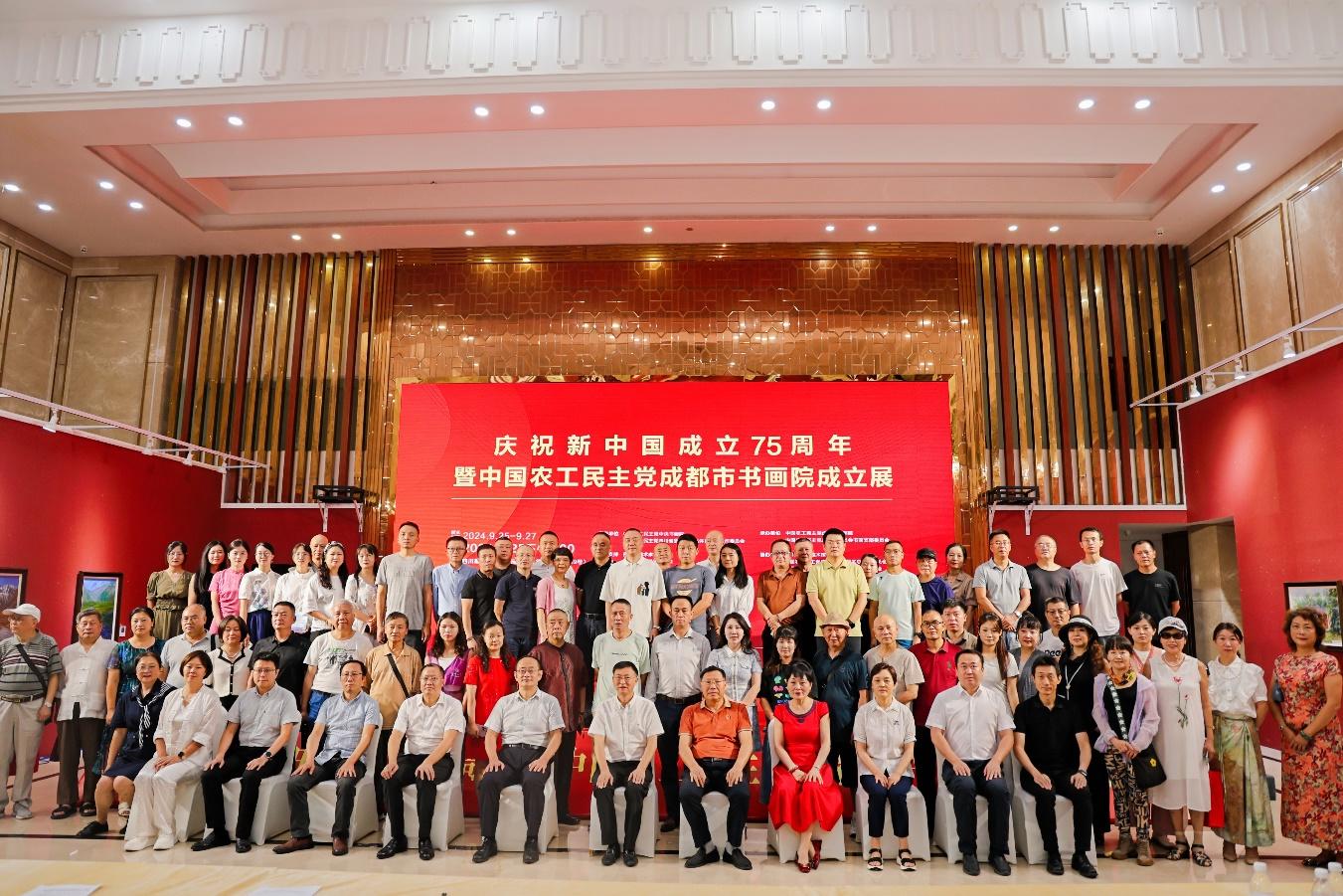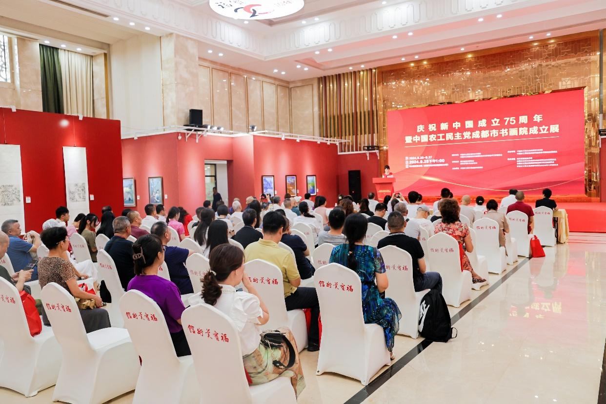 2024年9月25日,農工黨成都市委會在四川福寶美術館舉行慶祝新中國成立75周年書畫展暨農工黨成都市書畫院成立大會。農工黨成都市委會主委、市政協副主席甘華田,中共成都市委統戰部副部長、市政府僑辦主任鐘毅,四川省美術家協會副主席張躍進,農工黨成都市委會專職副主委胡偉峰等出席成立大會并觀展。農工黨成都市委會副秘書長孫迪主持成立大會。