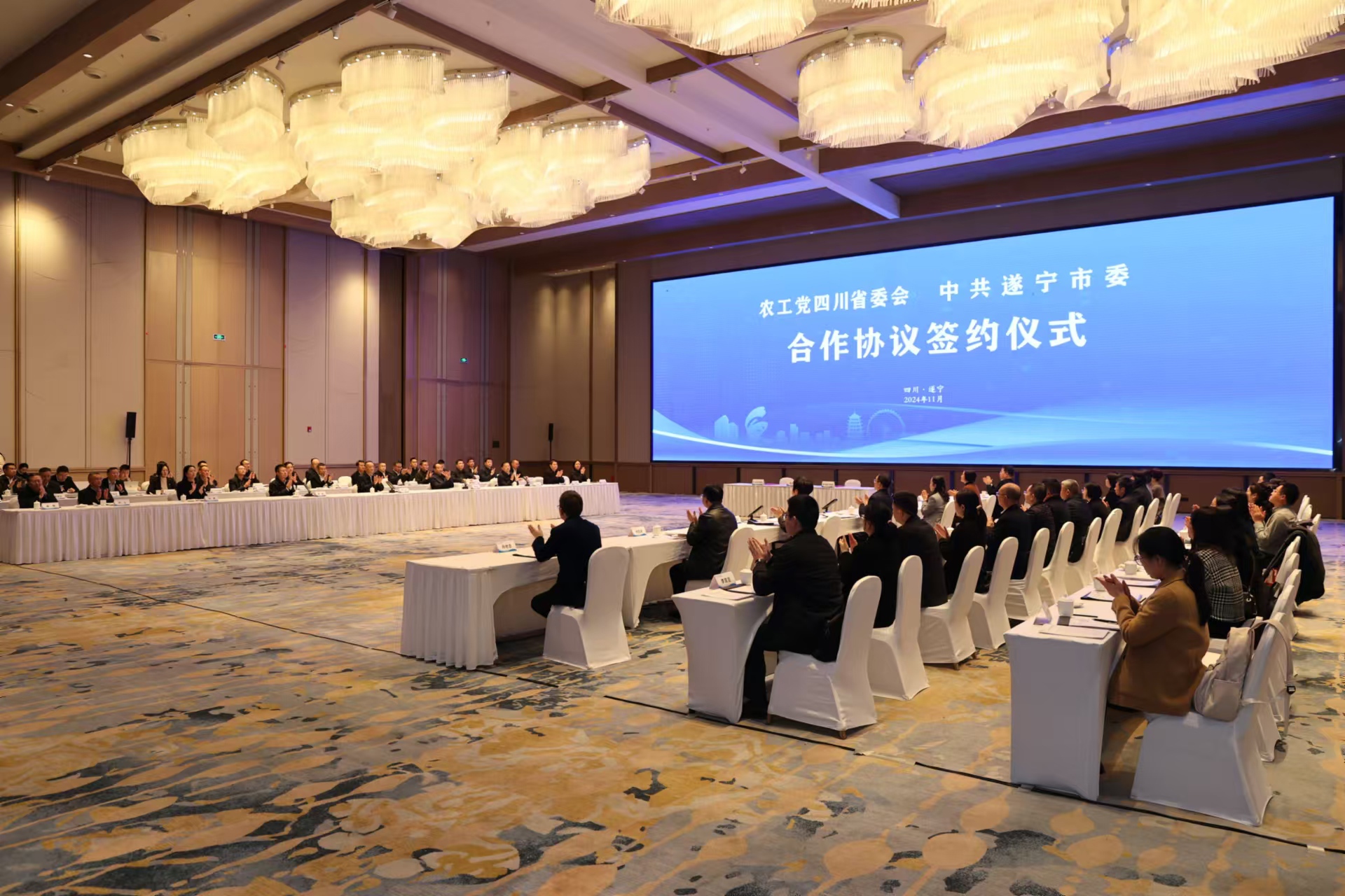 農(nóng)工黨四川省委會副秘書長、二級巡視員劉倫武,有關(guān)處室負責(zé)同志;遂寧市人大常委會主任周霖臨,遂寧市領(lǐng)導(dǎo)宋良勇、劉楓、劉建軍、鄧云、吳新春、何佳、謝炯,市直有關(guān)部門、各縣(市、區(qū))、市直園區(qū)負責(zé)同志參加了簽約儀式。