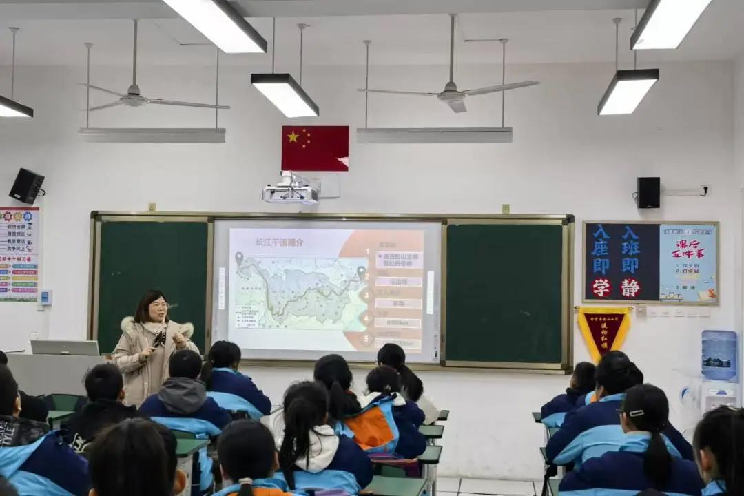 海光老師從長江水系各分支講到長江流域的地勢地貌,沿長江流域,講解流經(jīng)城市的經(jīng)濟文化歷史。最后,海光老師講述了近年的水污染以及藍藻暴發(fā)事件,一幅幅觸目驚心的圖片展示在同學(xué)們面前,江水變得渾濁不堪,水面上漂浮著大片藍藻,散發(fā)著難聞的氣味,嚴重影響了長江的生態(tài)環(huán)境。通過這些真實案例,同學(xué)們意識到保護長江的重要性與緊迫性。