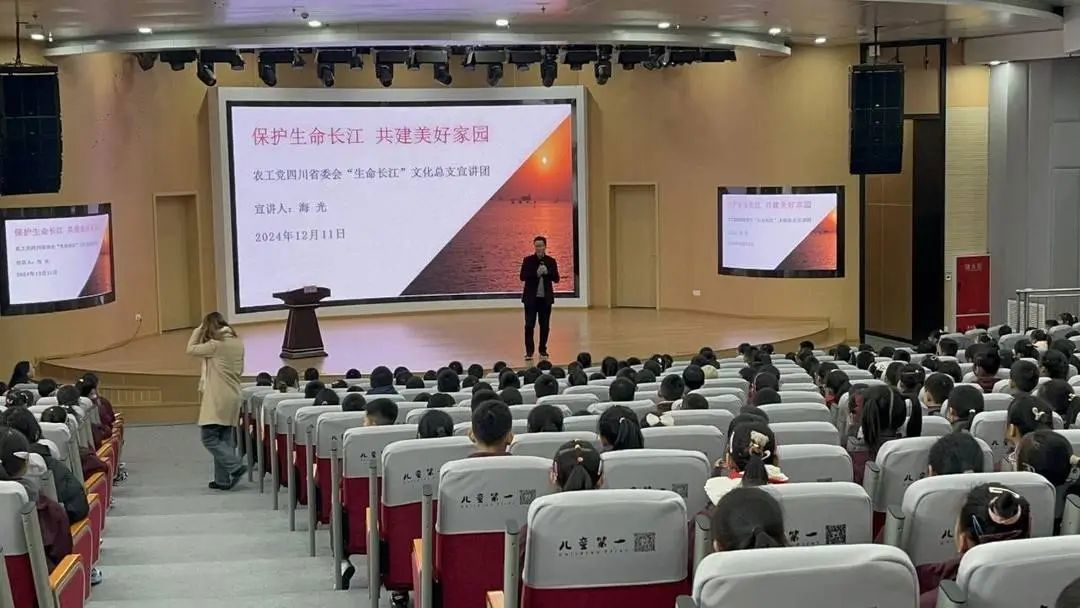 “生命長江由我守護”主題宣講,在成都市北新實驗小學的宣講嘉賓是農工黨四川省文化總支一支部副主委、四川廣播電視臺主持人海光、牛雪麗,金堂縣金山小學的宣講嘉賓是賴隆群老師。王然在四川交通職業技術學院圖書館宣講,歐乙成在眉山市彭山區公義鎮紅色教育基地宣講,范國慶在攀枝花市西區生態環境局宣講,賀佼在北川羌族自治縣禹里鎮禹里小學、綿陽飛行職業學院宣講,周開選在自貢市沿灘生態環境局宣講……樹牢上游意識,扛起上游責任,筑牢長江上游生態屏障。